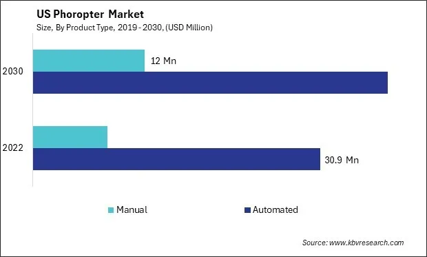 Moreover, the modern sedentary lifestyle has increased conditions like dry eyes and eye fatigue, further propelling the demand for phoropter-based examinations. The U.S. healthcare system's focus on preventive care has led to more individuals seeking regular eye check-ups, contributing to the growth of the phoropter market.