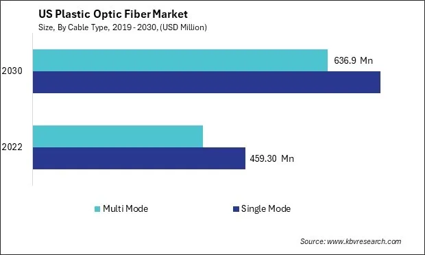 Moreover, the COVID-19 pandemic impacted the plastic optic fiber market in the U.S. The increased demand for high-speed internet and data connectivity to support remote work, online learning, and telemedicine has boosted the demand for fiber optic infrastructure, including plastic optical fibers. As the economy recovers from the impact of the pandemic, the demand for plastic fiber optics is expected to rebound, supported by the growing need for high-speed data transmission, connectivity, and digitalization across sectors in the U.S.