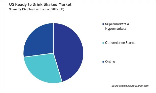 According to National Association of Convenience Stores, in 2020, Walmart saw a 20% expansion in its pickup and delivery capacity, aiming to increase it by 35%. Notably, in 2021, Walmart witnessed a remarkable surge of 170% in store orders. This underscores the escalating impact of supermarkets and hypermarkets in shaping the ready to drink shakes market in the United States.