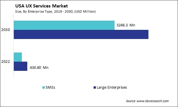 Furthermore, as the U.S. economy becomes increasingly digitized, enterprises understand the strategic importance of staying ahead in the digital realm. Investing in UX services is a strategic imperative to remain competitive and future-proof operations. The rise of mobile applications and the prevalence of online transactions in the U.S. have further underscored the importance of seamless UX in large enterprises. Companies are allocating substantial budgets to hire skilled UX designers, conduct user research, and implement iterative design processes to ensure continuous improvement. Therefore, the growing recognition of UX services as a critical business investment in large U.S. enterprises stems from their proven ability to enhance customer satisfaction, loyalty, and overall performance.