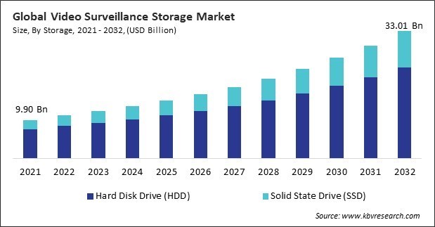 The Global Video Surveillance Storage Market size is expected to reach $33.01 billion by 2032, rising at a market growth of 11.9% CAGR during the forecast period.