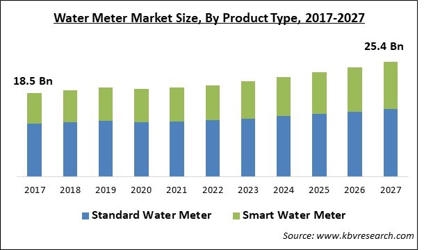 The water meter market size is projected to reach USD 25,368.6 million by 2027.