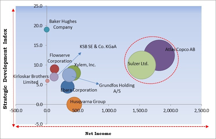 The major strategies followed by the market participants are Acquisition. Based on the Analysis presented in the Cardinal matrix; Atlas Copco AB and Sulzer Ltd. are the forerunners in the Water Pump Market. Companies such as Xylem, Inc., Ebara Corporation and Grundfos Holding A/S are some of the key innovators in Water Pump Market.
