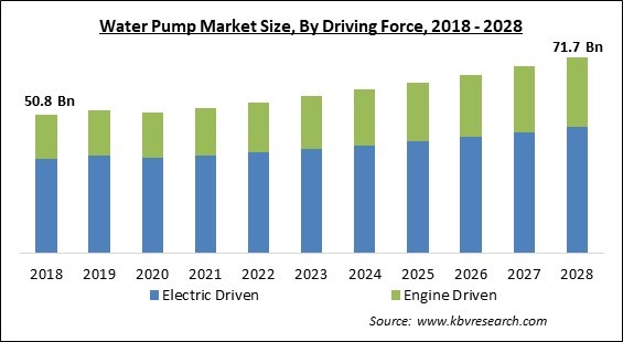 Global Water Pump Market Size, Share & Industry Trends Analysis Report By Type (Centrifugal and Positive Displacement), By Driving Force (Electric Driven and Engine Driven), By Application, By Regional Outlook and Forecast, 2022 - 2028