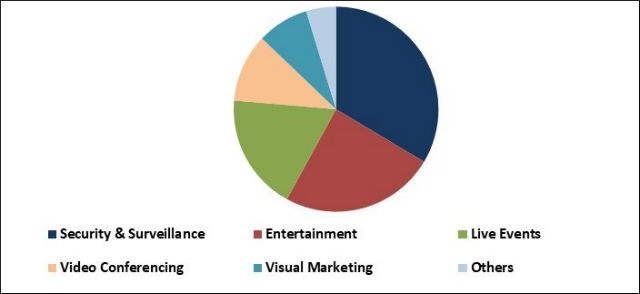 The device is expected to see an increase in sales over the forecast period due to the increasing popularity of virtual workplace communication between professionals. In addition, business owners can assimilate video feeds to a security system, thus enabling them to view any part of their business in real time from a computer or smartphone.