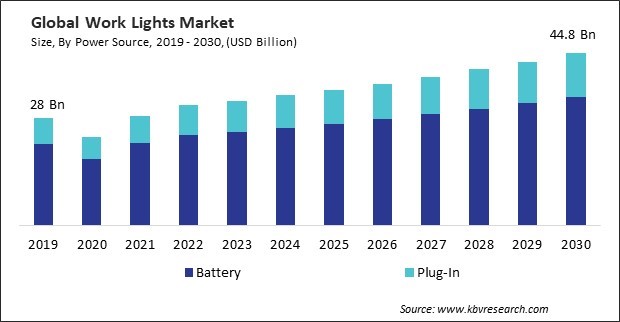 The Global Work Lights Market size is expected to reach $44.8 billion by 2030, rising at a market growth of 4.7% CAGR during the forecast period. In the year 2022, the market attained a volume of 5,46,126.9 thousand units, experiencing a growth of 5.2% (2019-2022).
