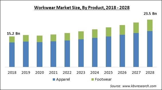 The workwear market size is projected to reach USD 23.5 billion by 2028.
