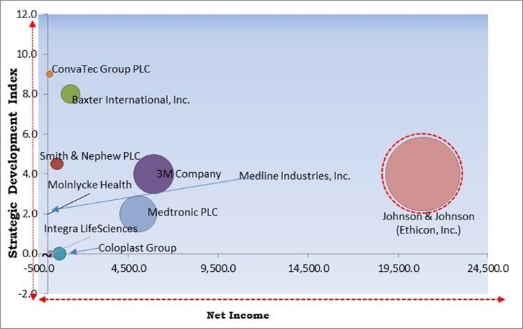 The market research report covers the analysis of key stake holders of the market. Key companies profiled in the report include 3M Company, Coloplast Group, Medline Industries, Inc., Smith & Nephew PLC, Medtronic PLC, ConvaTec Group PLC, Integra LifeSciences Holdings Corporation (Derma Sciences, Inc.), Johnson & Johnson (Ethicon, Inc.), Baxter International, Inc., and Molnlycke Health Care AB.