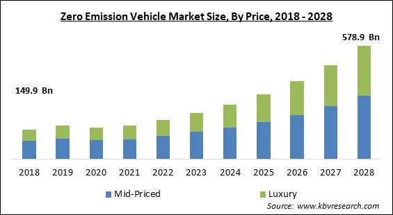 The Mid-Priced segment acquired maximum revenue share in the Global Zero Emission Vehicle Market by Price in 2021 thereby, achieving a market value of $322.1 billion by 2028.